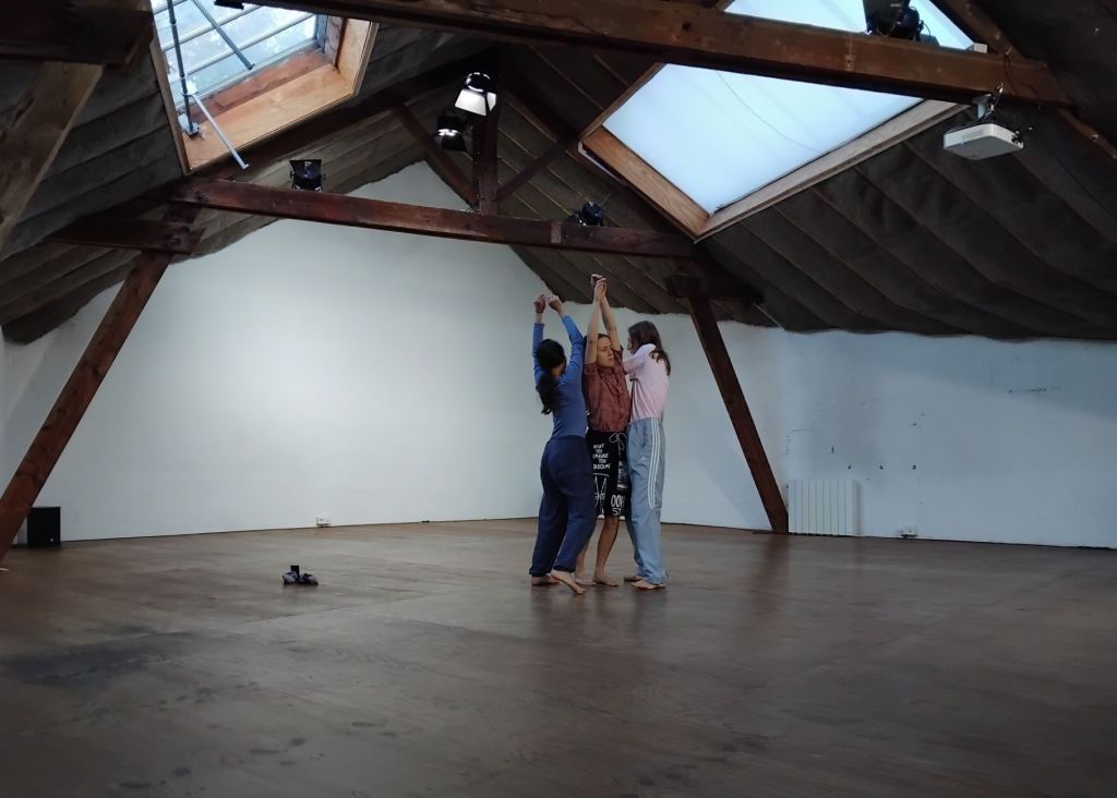In October 2025, with Yu-Hsuan and Barbara together with me in the studio for the first time, we continue the process of creation. Little by little, piece by piece. This, by way of a generous accueil studio by Honolulu, in Nantes. We went north! Usually, for my work, it seems I am always heading south. The north gave a refreshing, autumnal energy. We worked inside and outside. In gardens and at the river’s edge. This work period recalled many beautiful and somehow still-active memories from my rehearsal process with daniel (lühmann) and Alex (Arturo), back in 2022, at buda in Kortrijk, along the river Leie. This time, the river was la Loire. Now we have an established methodology. A way of working in situ that creates a composition. We have learned phrases, repeatable materials, a movement bank… The beast is taking form. We are somewhere in the mid-end of this work. The economy is what circulates between us; the shapeshifters? Well, of course, they are the dancers. The subject of the thing is us, unfolding the thing.