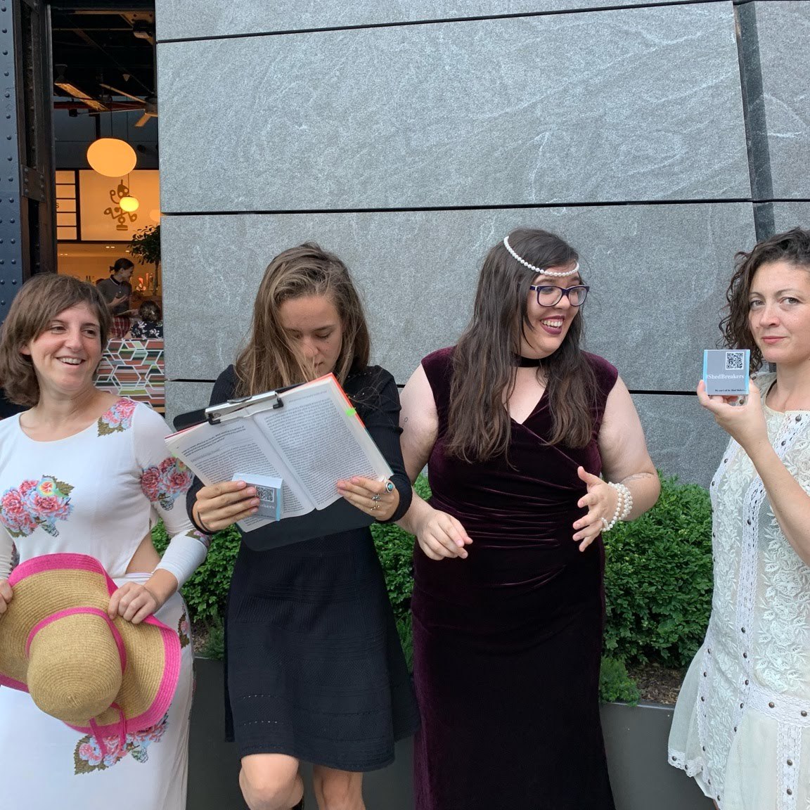 It’s galvanizing to stop the mechanics of the money machine even if just for the seven or eight minutes we were able to sit and have a picnic and muse over Judith Butler (who else was with us at our picnic? Audre? adrienne maree?) before I had to get up (in my fabulous black dress and heels like I was dressed for the funeral we should all be dressed for walking onto these kinds of grounds) and talk to this Mall Cop equivalent security guard. He wore sunglasses that had a Secret Security level intensity but I had my clipboard. Common. He was charged with removing us and for sure he did but not before some passersby asked us what we were doing and we told them. We made stickers, too, to paste inside The Shed’s bathroom stalls, but we didn’t end up getting that far. I wonder what would have happened if we had. Do we still have that website linked to the QR code? On it you will find the essay written by Bishop, the sentiment of which is in deep alliance with our poetic critique of the Shed for posing to do a thing instead of doing it. The essay is luscious, and everyone should read it whenever they’re wondering if they’re making things up or does the Shed actually suck. You’re not making things up, it sucks.