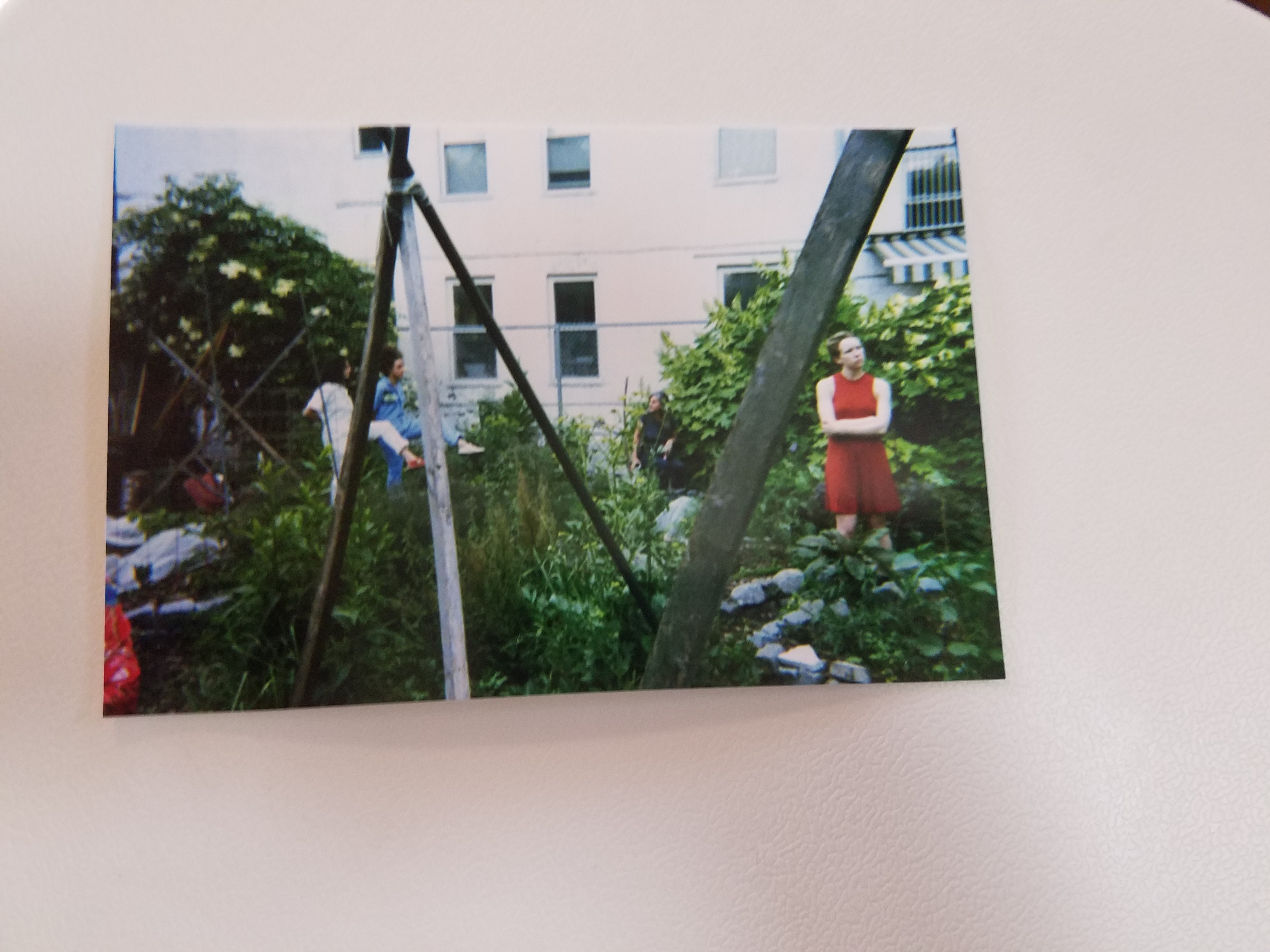This work was performed at Leakin Park (Baltimore), Rittenhouse Square (Philadelphia), 6th Street Community Garden (Brooklyn), Chez Bushwick Studio, Center for Performance Research, and Park Slope Community Day.